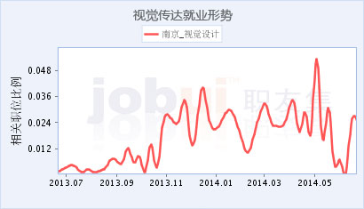 视觉传达就业形势分析图说明:曲线越向上代表市场需求量越大,就业情况越好。反之,代表该类职位 需求量较少。